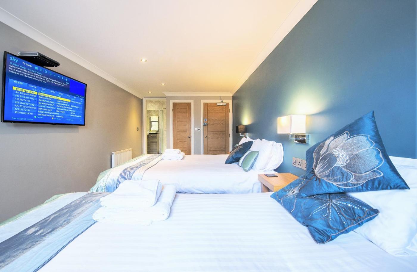 Each refurbished room features a flat-screen HD TV, en-suite facilities and blackout curtains. Additional benefits include room service, a hairdryer and teacoffee making facilities.
